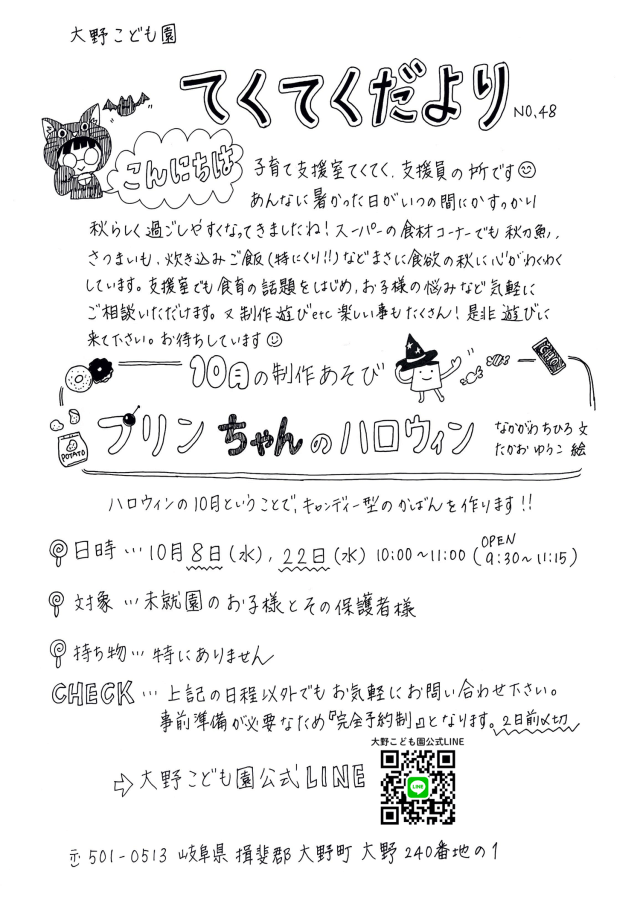 ご予約は「大野こども園公式LINE」にて受付してます。